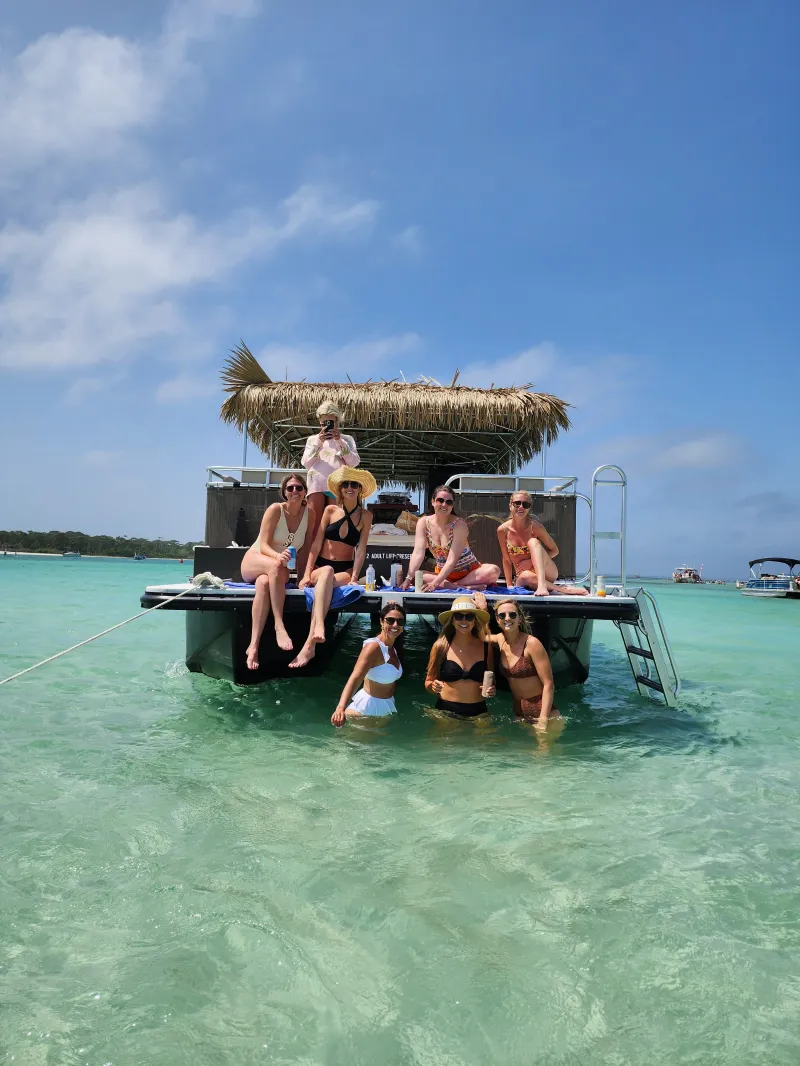 Crab Island Tiki Tours is a family-owned small business where our passion is sharing our love of the beautiful Destin Area with others. We are locals who love to share what we do for fun with you. We provide private, Captained charters aboard our beautiful 18 passenger, 32′ Tiki Boat where the boat is your boat for the duration of the trip. You make the call – We offer Crab Island trips, dolphin viewing trips, shelling, sunset trips, sightseeing trip, and combo trips. We even make stops at waterfront restaurants/bars where the locals hang.